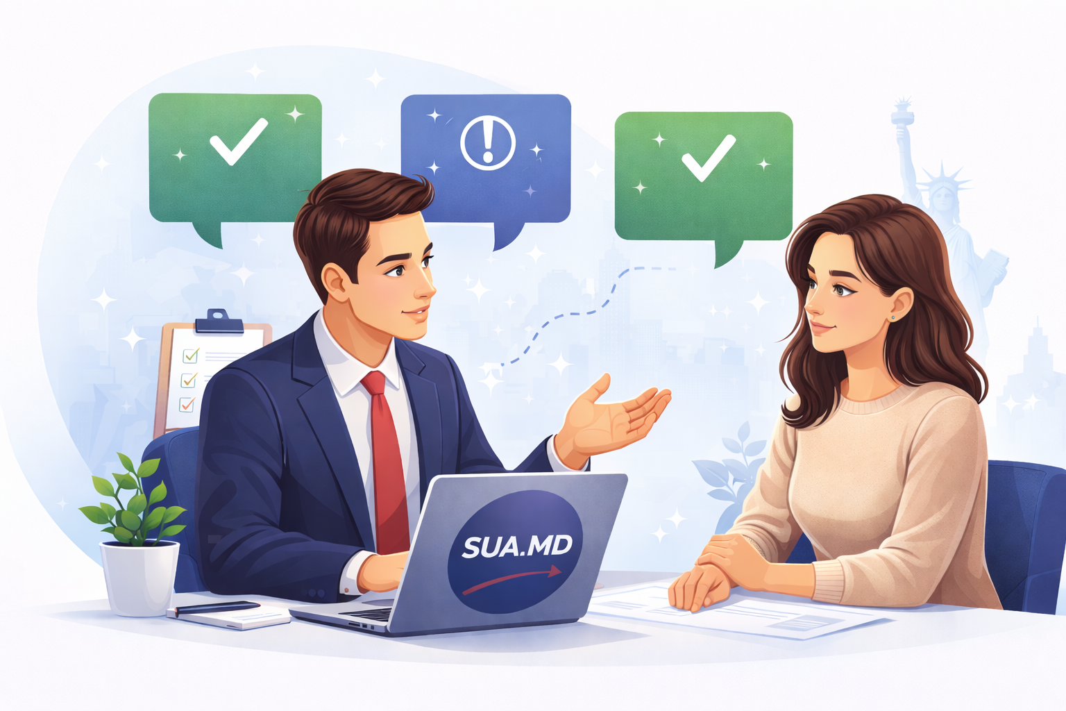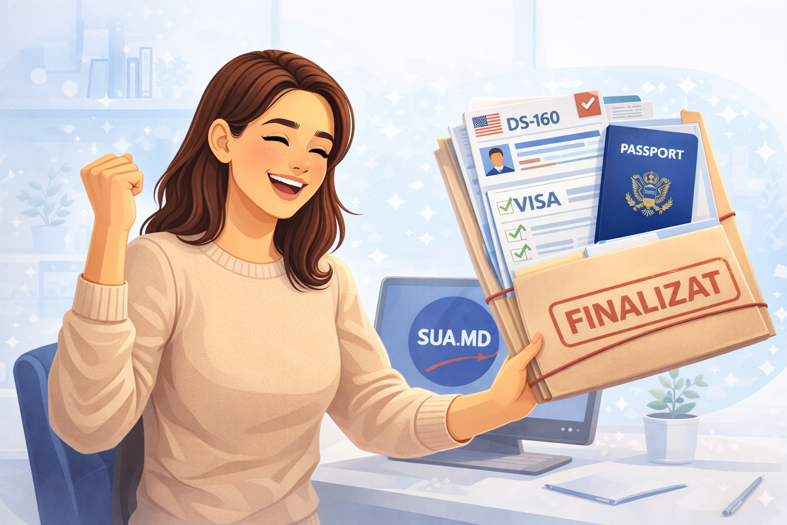 SUA.MD este un serviciu privat de consultanță și nu reprezintă Ambasada Statelor Unite ale Americii sau vreo instituție guvernamentală. Nu avem autoritatea de a aproba sau refuza vize. Decizia finală privind acordarea vizei aparține exclusiv autorităților americane.